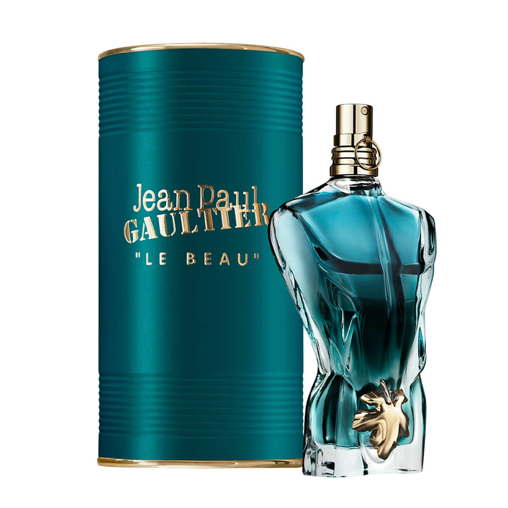 Com uma figura esbelta, músculos proeminentes e vestido apenas com uma única folha de videira, colocada em local estratégico, o frasco de Le Beau é um símbolo de masculinidade e ousadia. Sua embalagem é a icônica lata, objeto que Jean Paul Gaultier usa em diversas criações, e apresenta, dessa vez, uma nova tonalidade verde, mais natural e terrosa, elegante e fresca. Nesta lata, Le Beau está escrito em ouro para trazer um toque ainda maior de elegância para o perfume.